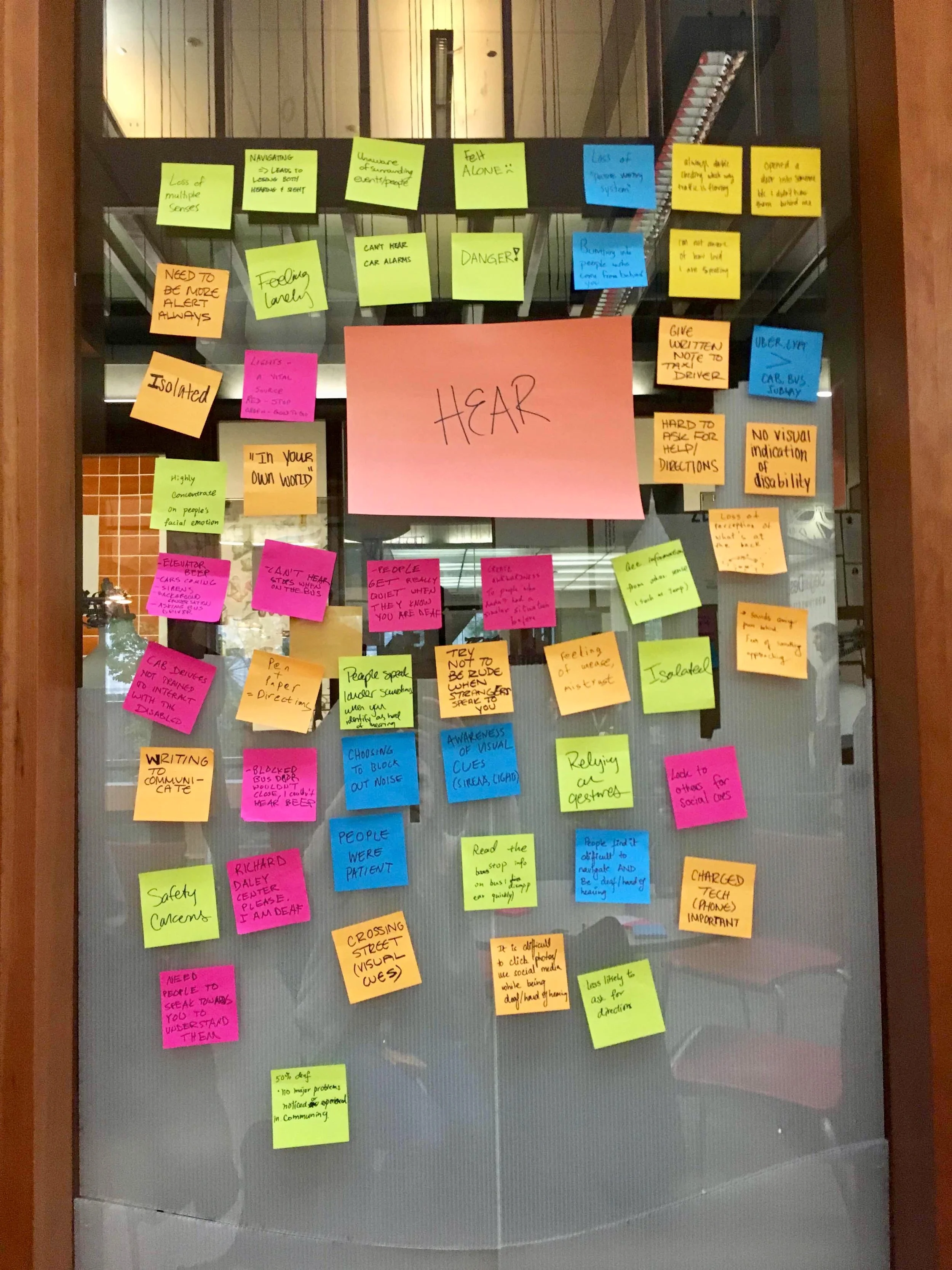 My role: Collaborated with students from design programs at Penn, MIT, Northwestern, Carnegie Mellon. Began with emapthy exercise to simulate experiencing life with a hearing impairment. Following, worked through the design process in 24 hours to develop insights, ideate, prototype, and propose potential solutions to improve the last mile travel experience.