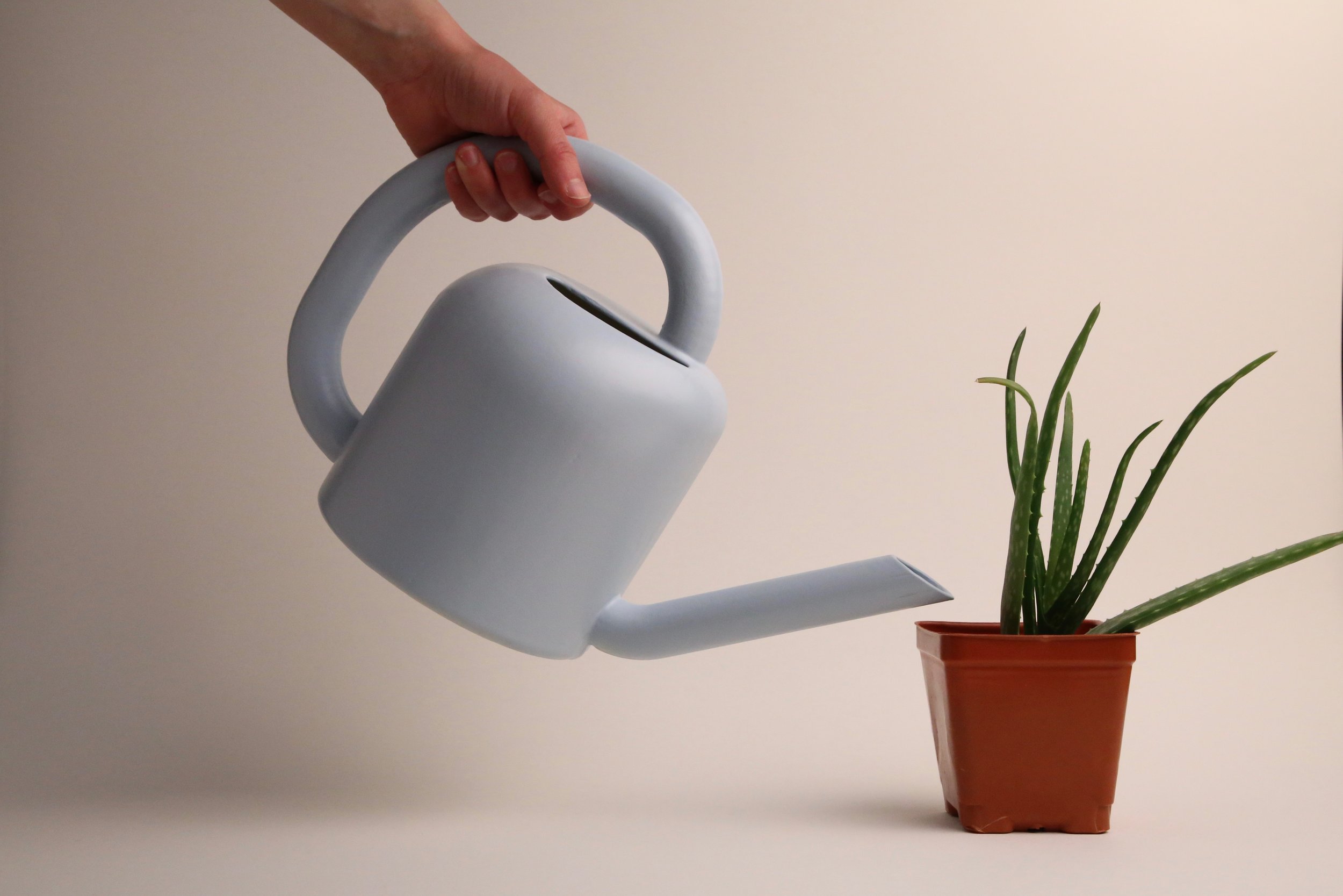 Focusing on ergonomics, I developed a serious of prototypes to determine the best angle and handle configuration for the watering can. Later, I refined the prototypes with an increased level of fidelity.